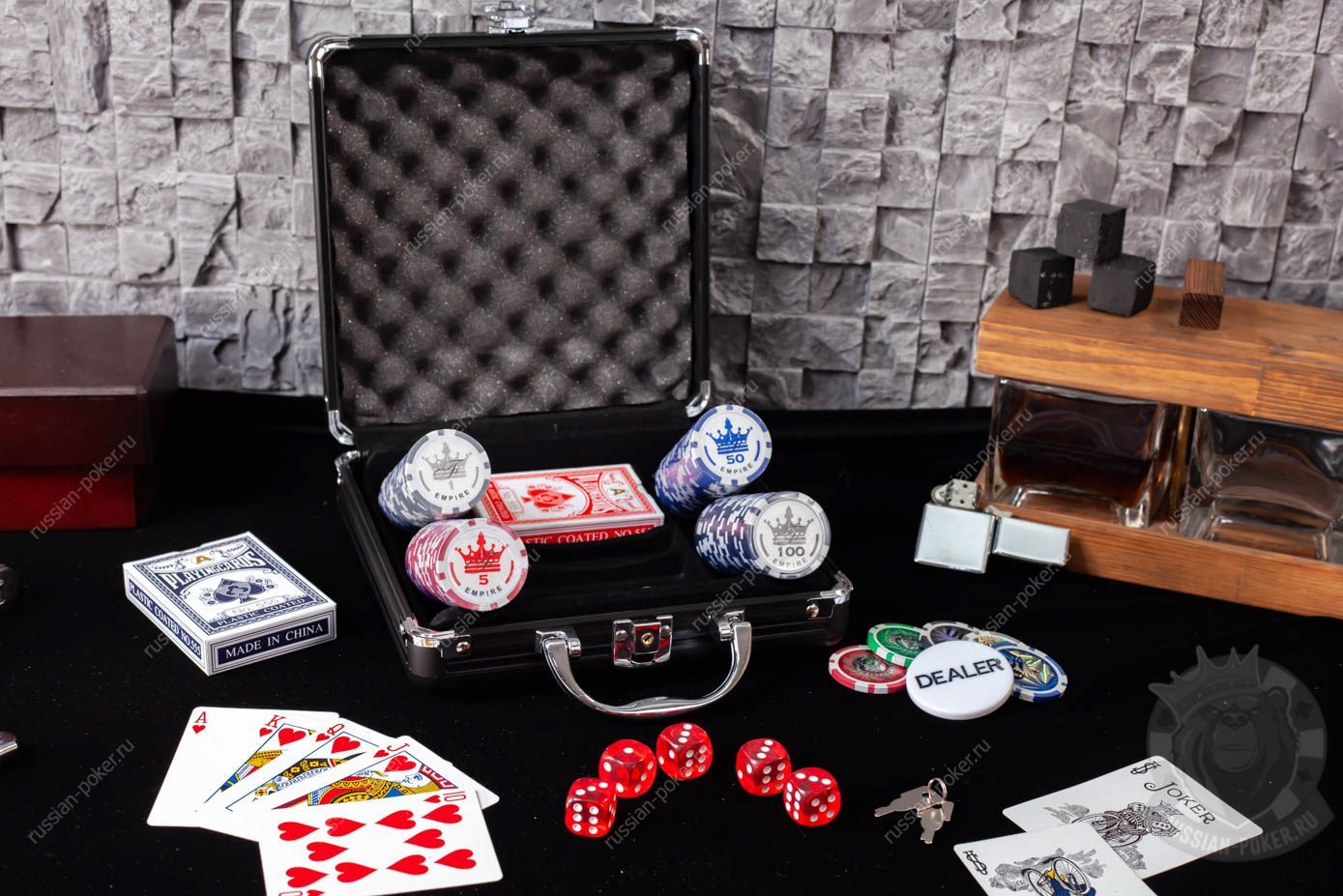 Набор покера Empire на 100 фишек с номиналом, в кейсе с кожаными вставками