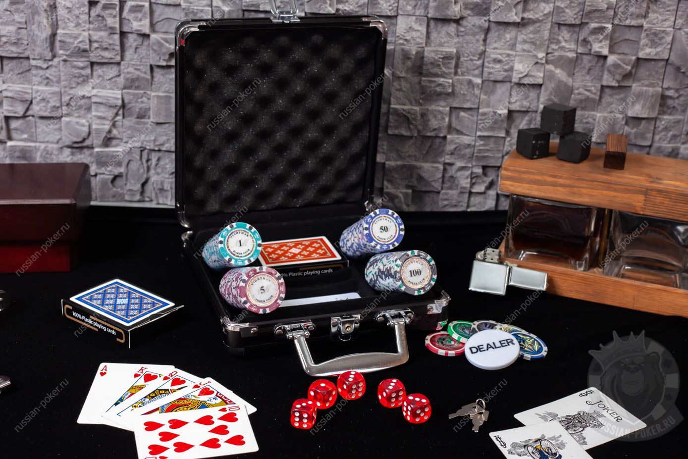 Набор покера Ultimate на 100 фишек с номиналом, в стальном кейсе с пластиковыми картами