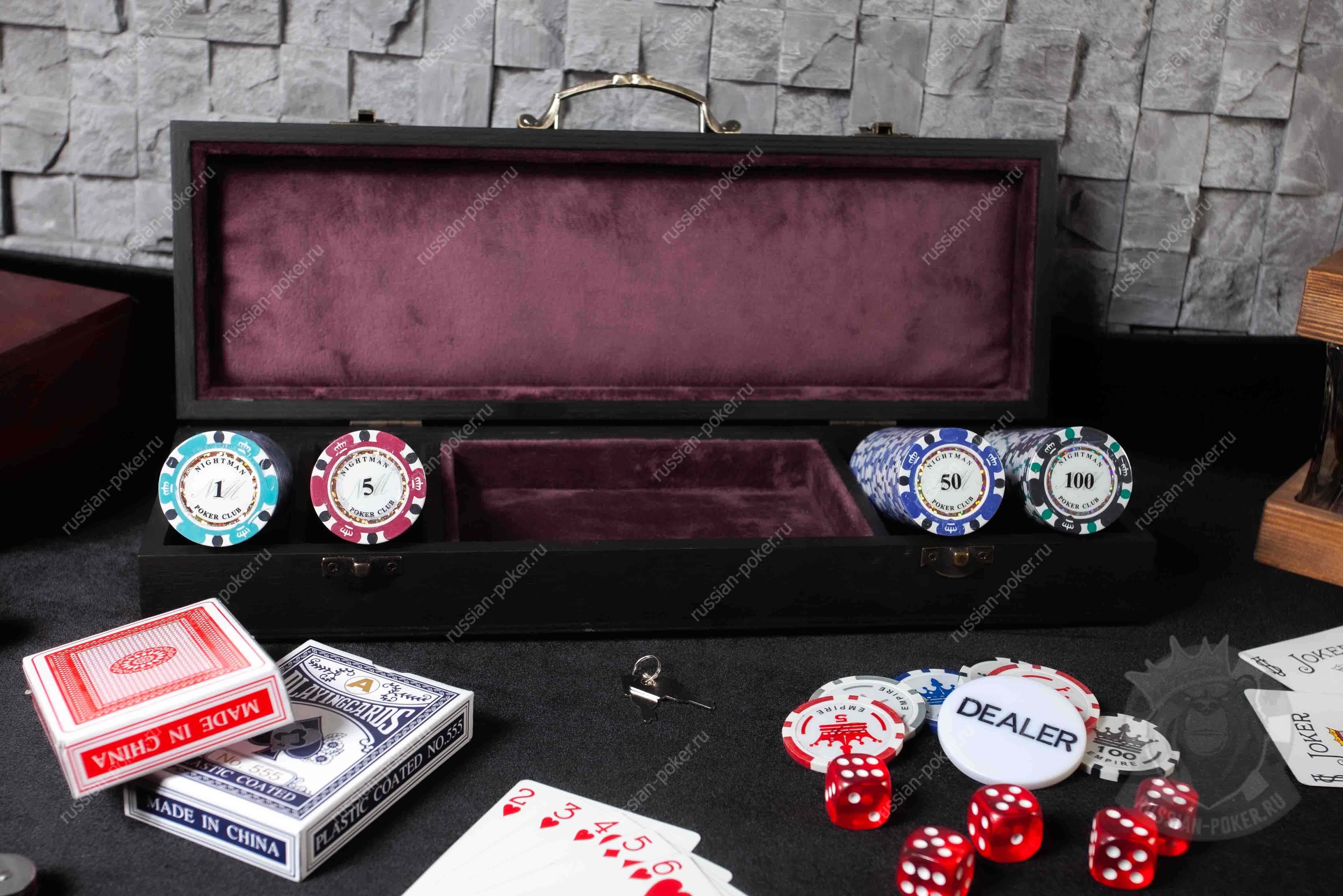 Набор покера Nightman Premium на 100 фишек с номиналом, в черном деревянном кейсе