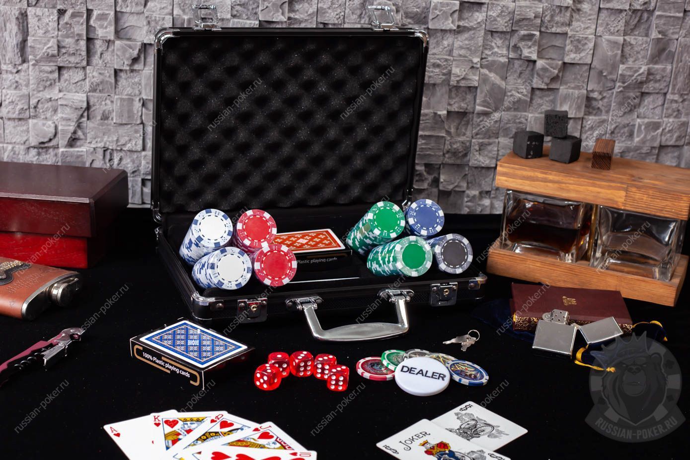 Набор покера Dice на 200 фишек в черном кейсе с пластиковыми картами