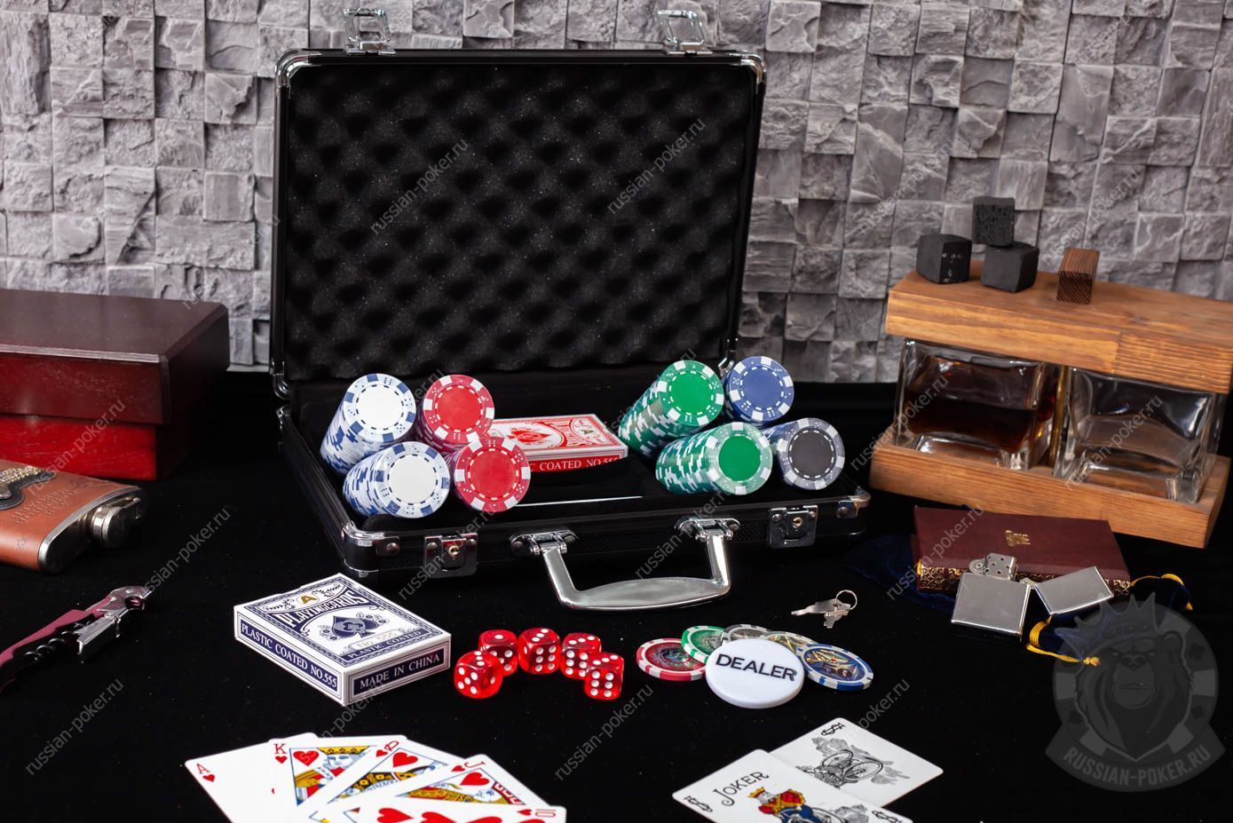 Набор покера Ultimate на 200 фишек с номиналом, в стальном кейсе с пластиковыми картами