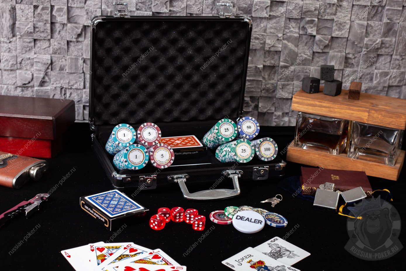 Набор покера Stars ULTRA на 200 фишек с номиналом, в фирменном кожаном кейсе
