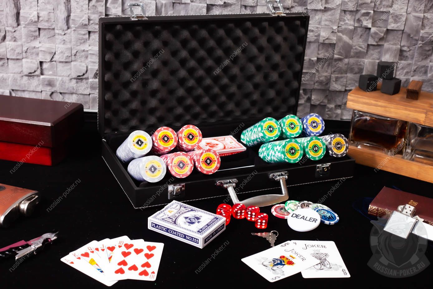 Набор покера Crown на 300 фишек с номиналом, в кожаном кейсе