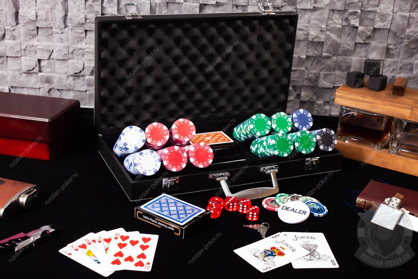Набор покера Dice на 300 фишек в кожаном кейсе с пластиковыми картами