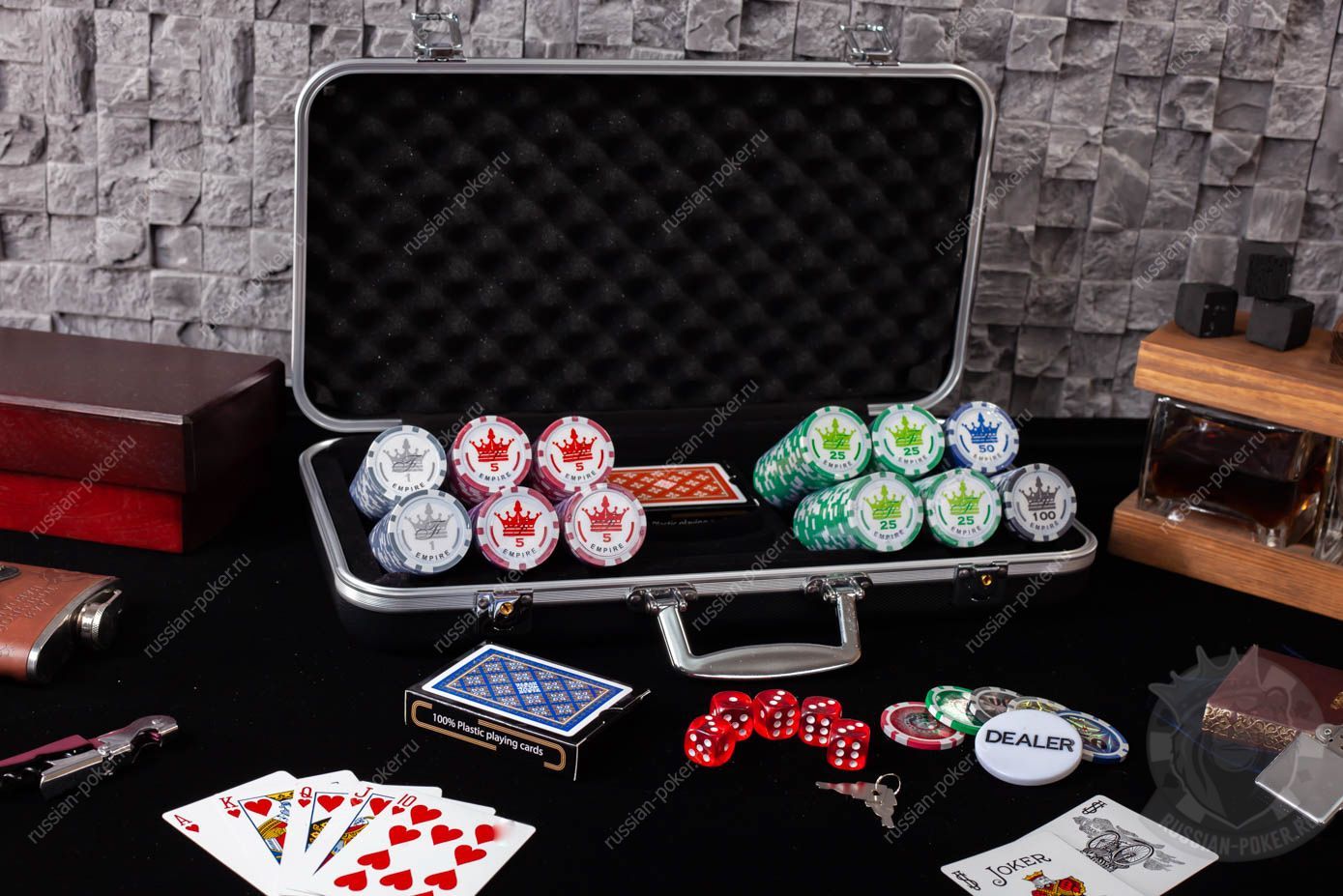 Набор покера Empire на 300 фишек с номиналом, в оригинальном черном кейсе с пластиковыми картами