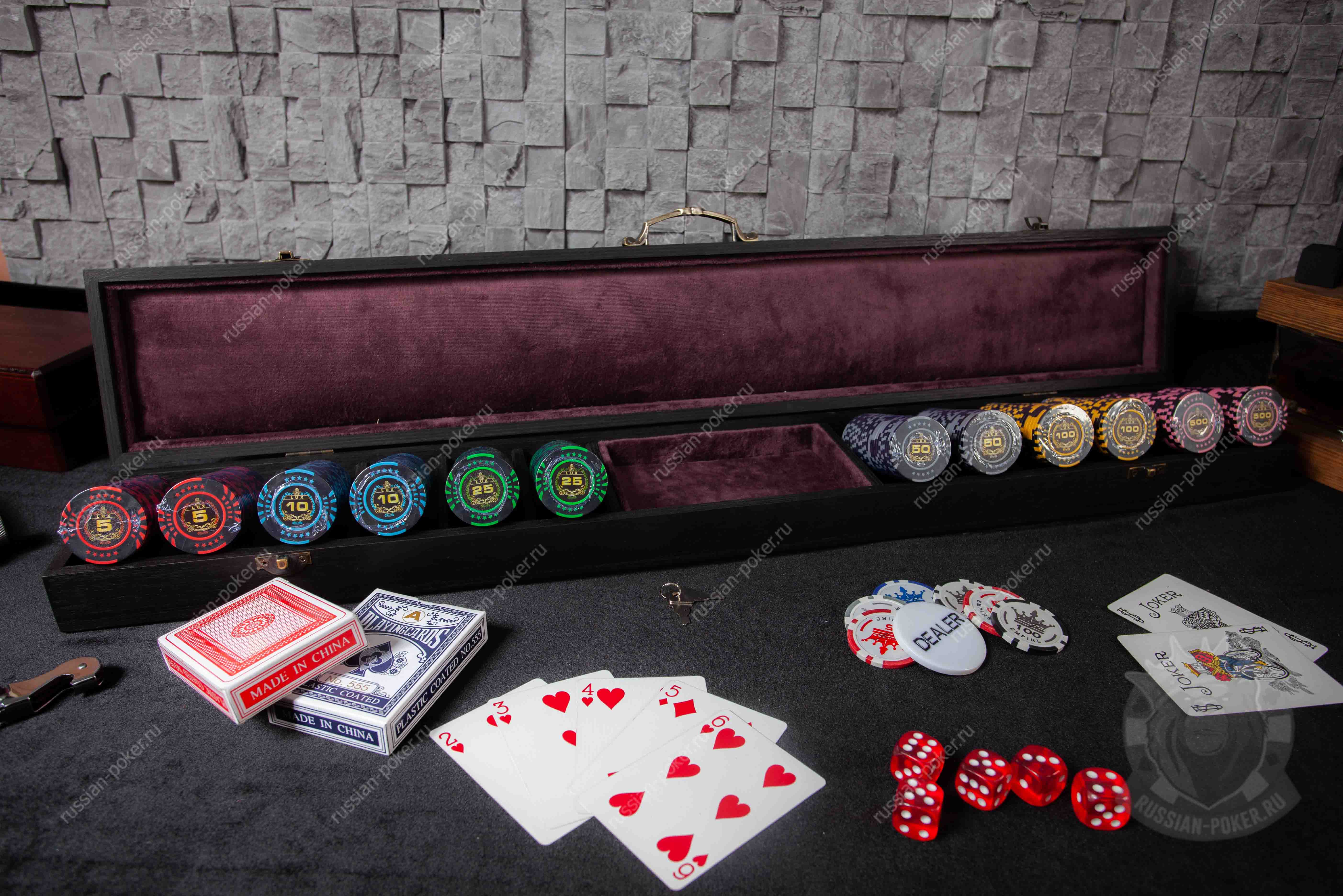 Набор покера RussianPro на 300 фишек с номиналом, в красном деревянном кейсе