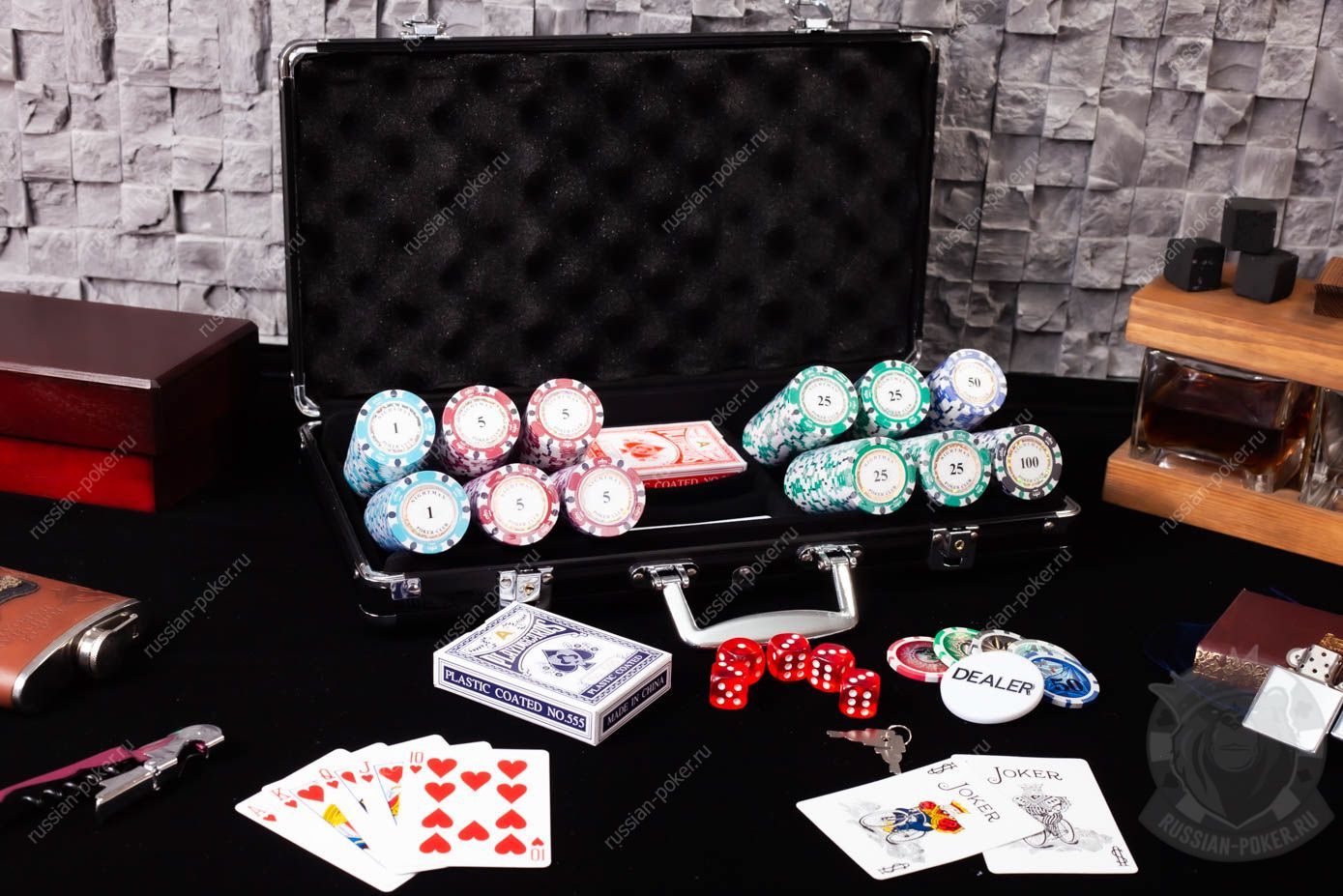 Набор покера Empire на 300 фишек с номиналом, в стальном кейсе с пластиковыми картами