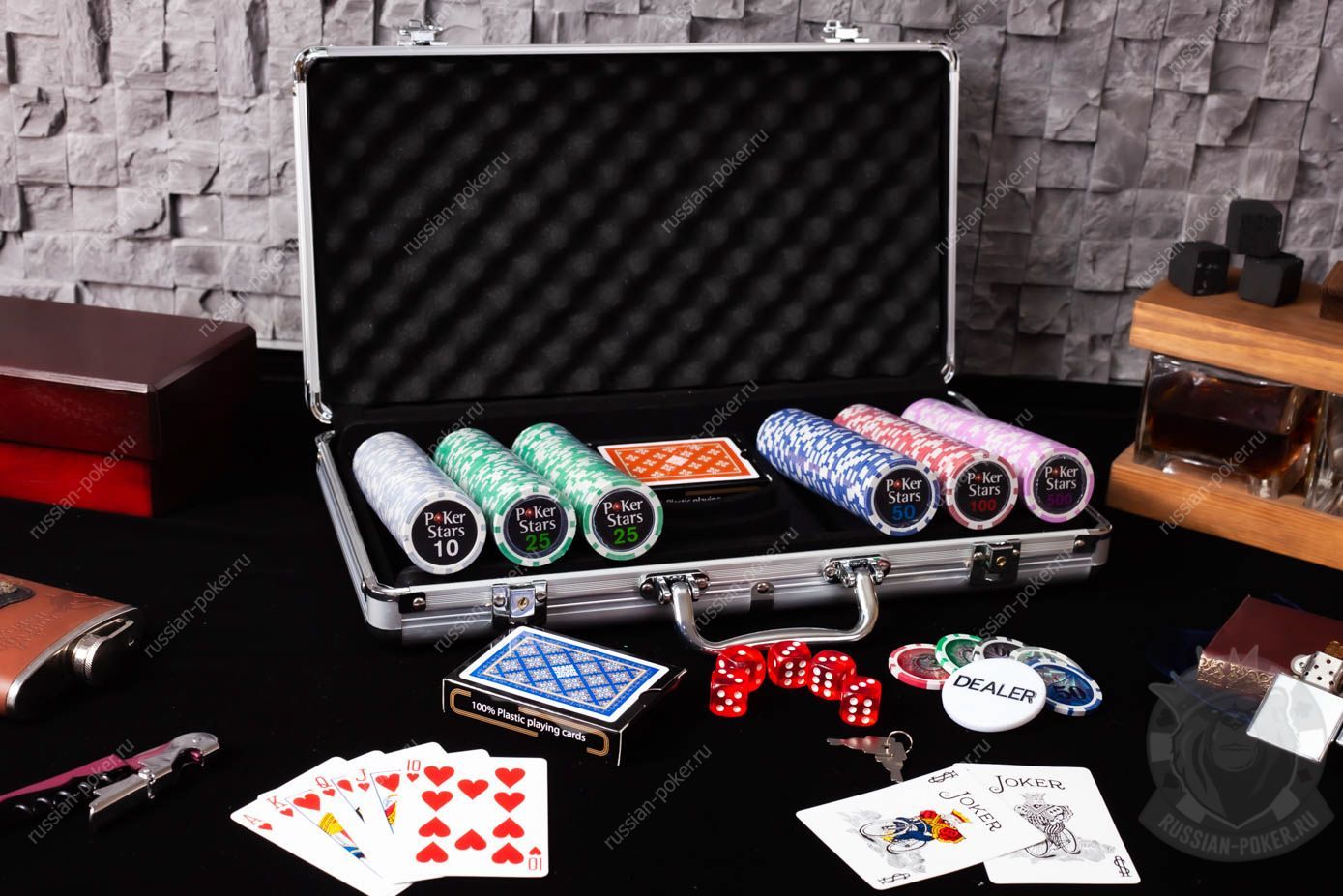 Набор покера Poker Stars на 300 фишек с номиналом, в стальном кейсе с пластиковыми картами