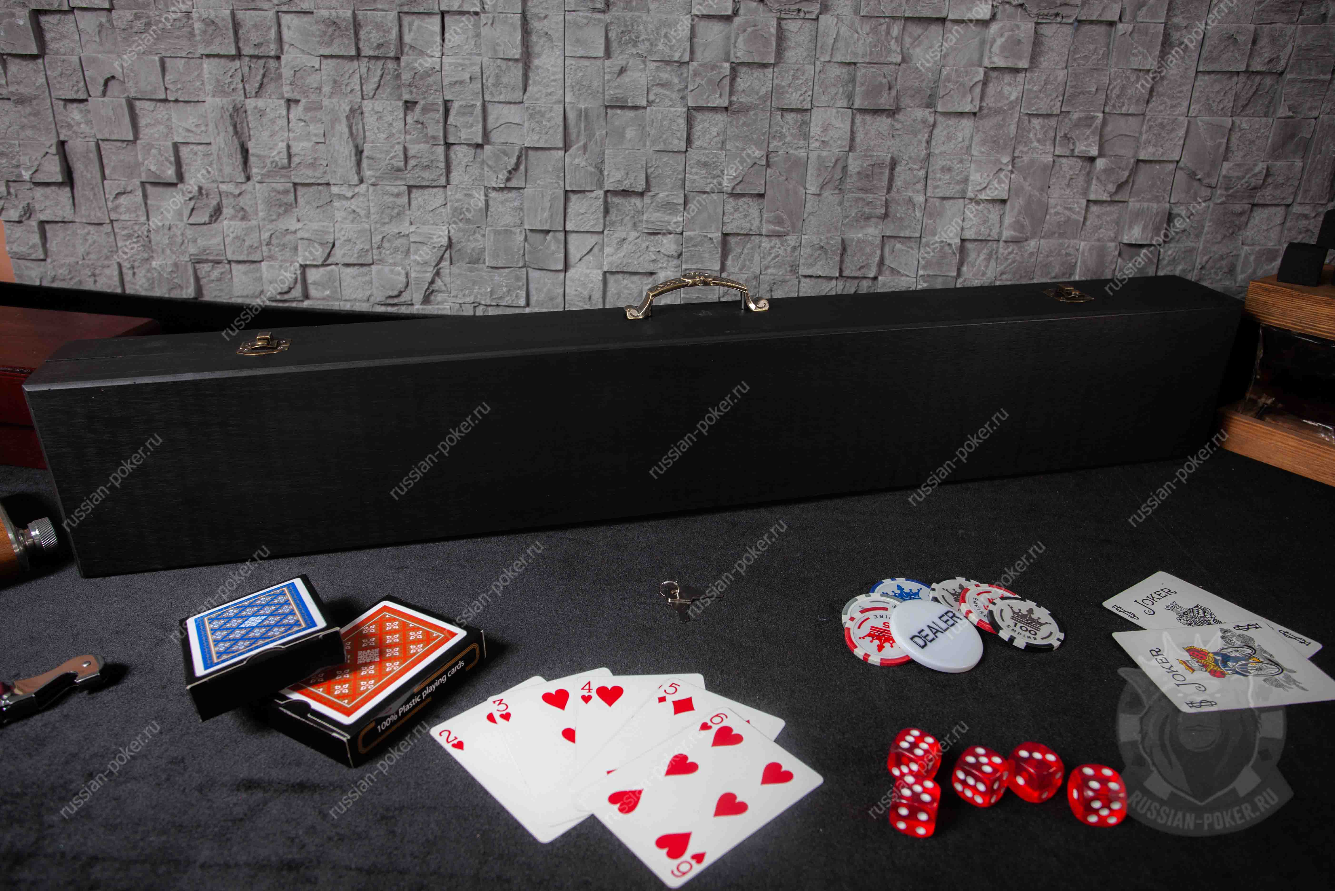 Набор покера VIP на 300 фишек с номиналом, в черном деревянном кейсе