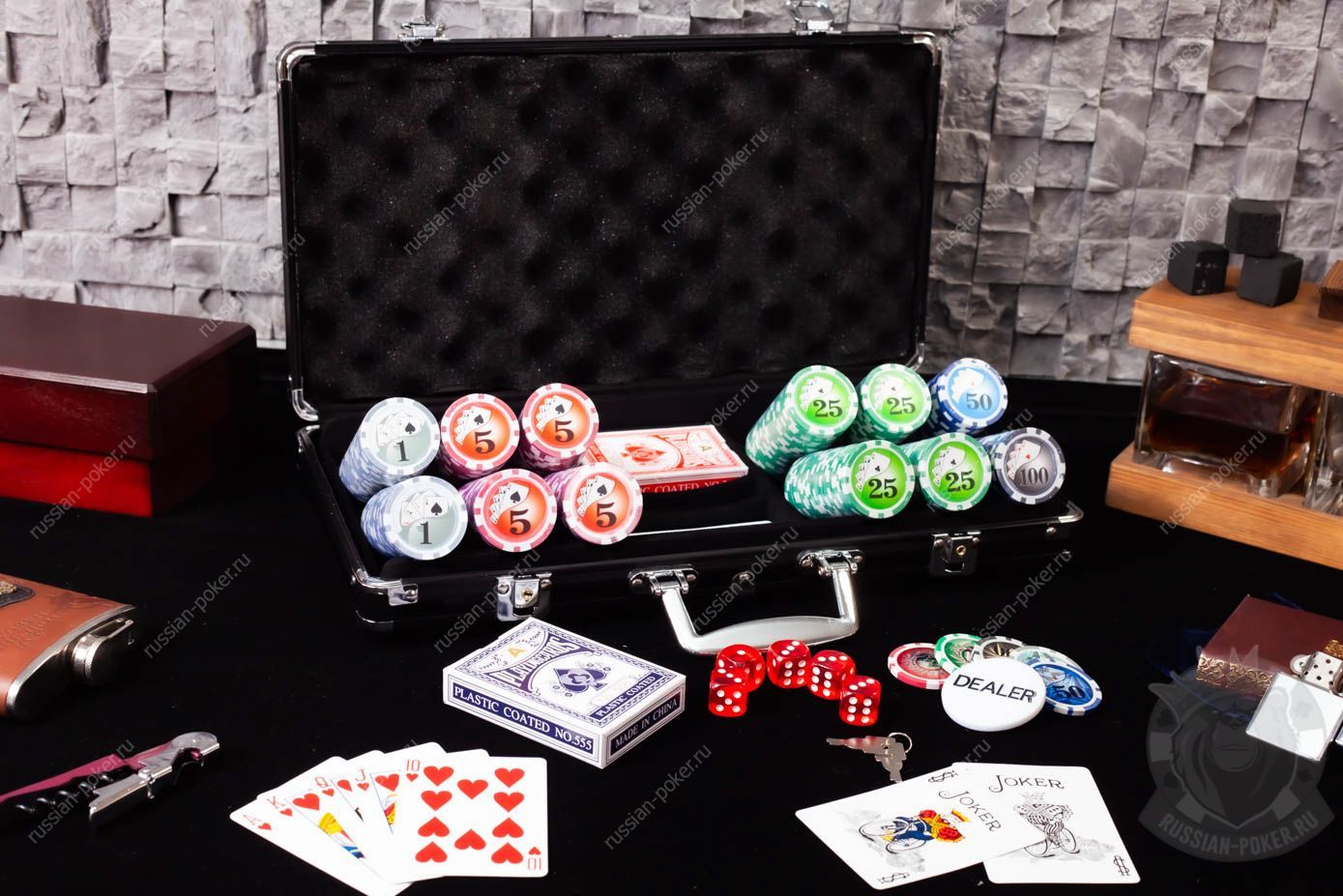 Набор покера Royal Flush на 300 фишек с номиналом, в кейсе с кожаными вставками