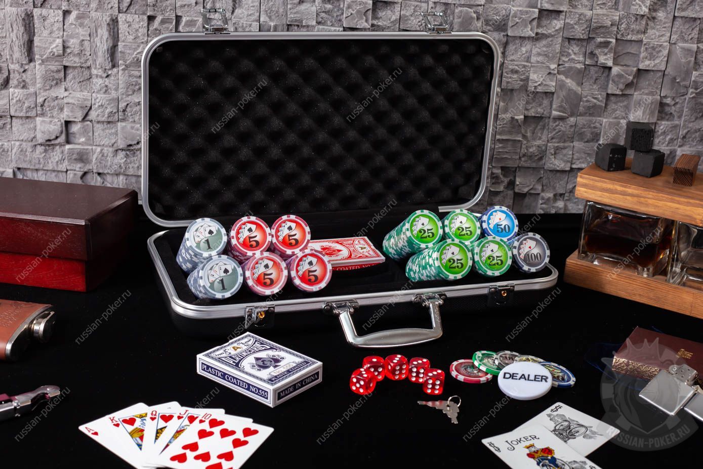 Набор покера Royal Flush на 300 фишек с номиналом, в оригинальном черном кейсе