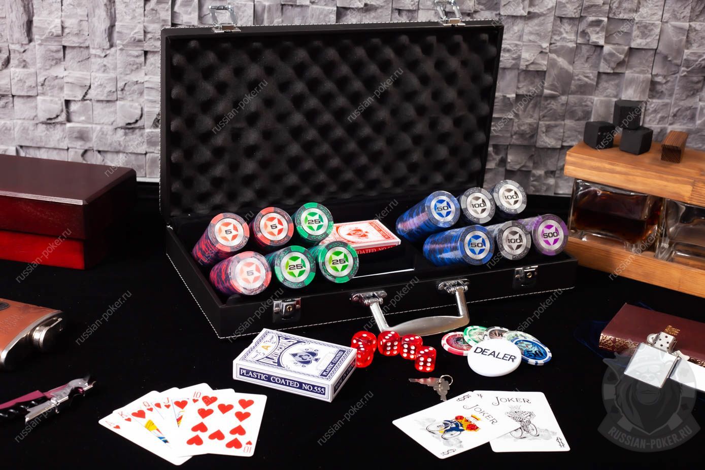 Набор покера Dice на 300 фишек в черном деревянном кейсе с пластиковыми картами