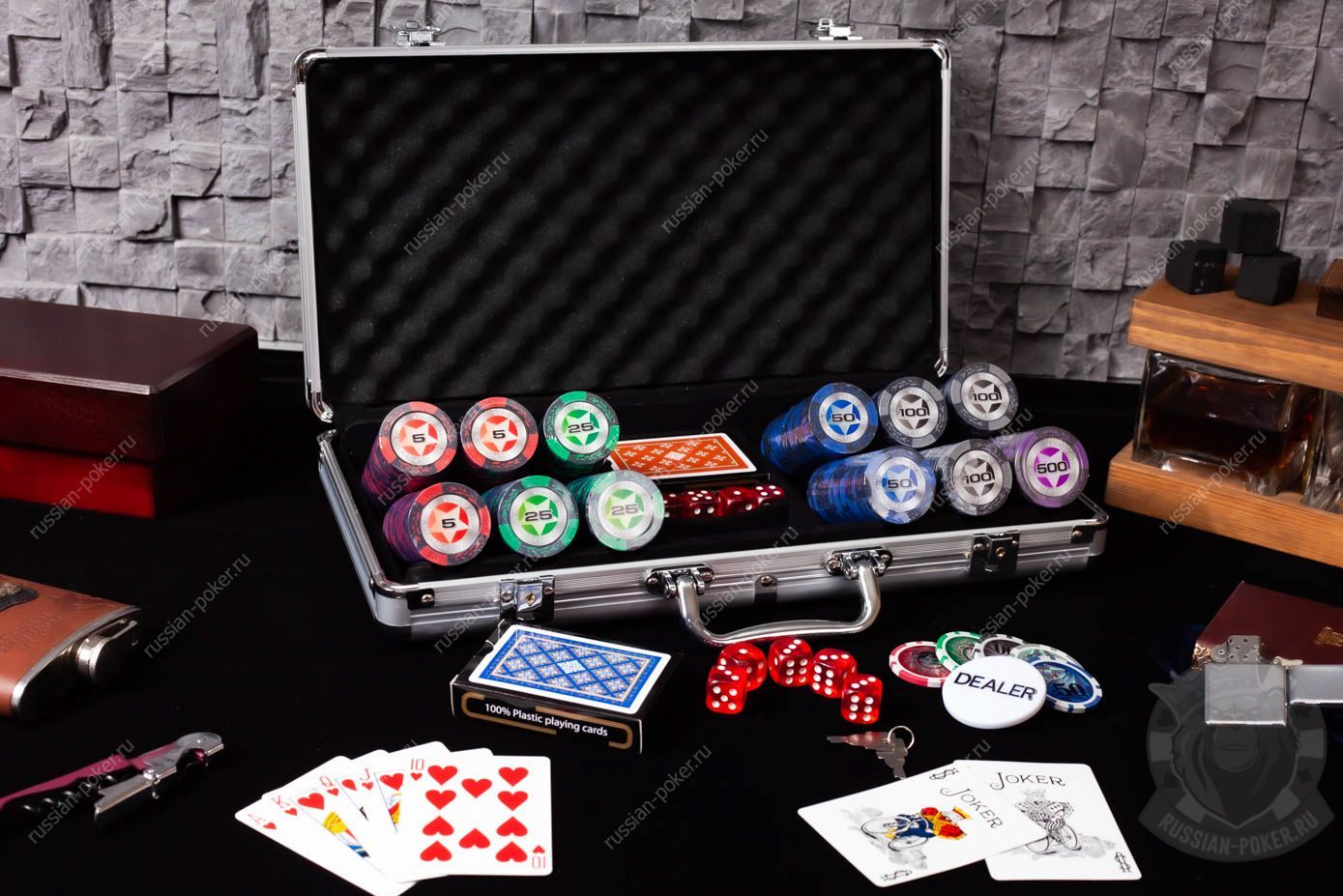 Набор покера Stars ULTRA на 300 фишек с номиналом, в стальном кейсе с пластиковыми картами