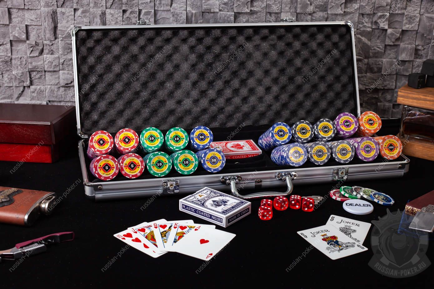 Набор покера Crown на 500 фишек с номиналом, в стальном кейсе