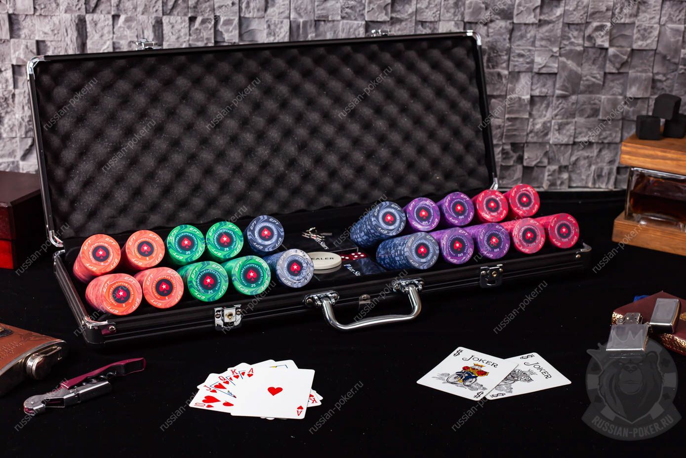Набор покера EPT Ceramic на 500 фишек с номиналом, в кейсе с кожаными вставками