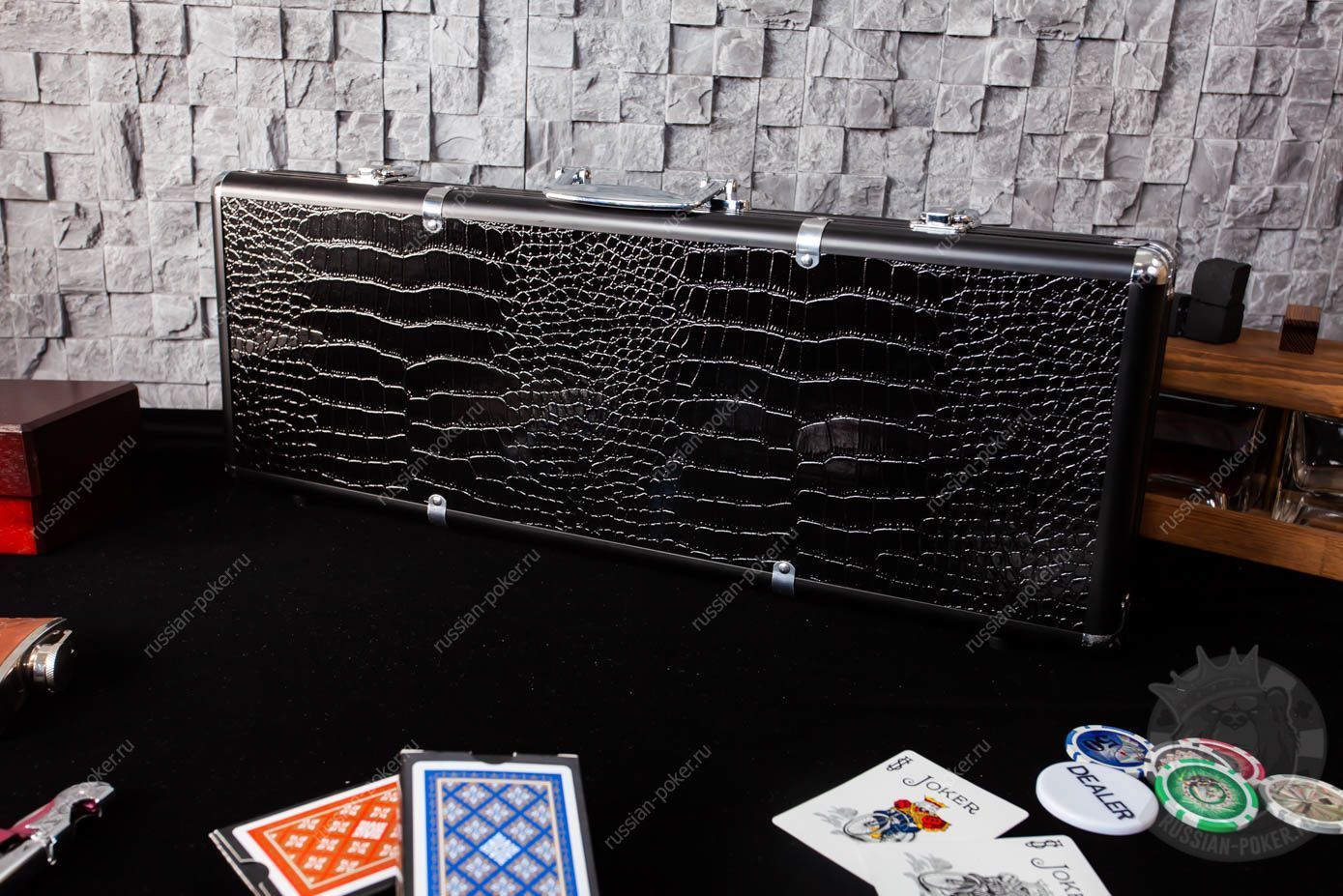Набор покера LUX на 500 фишек с номиналом, в кейсе с кожаными вставками