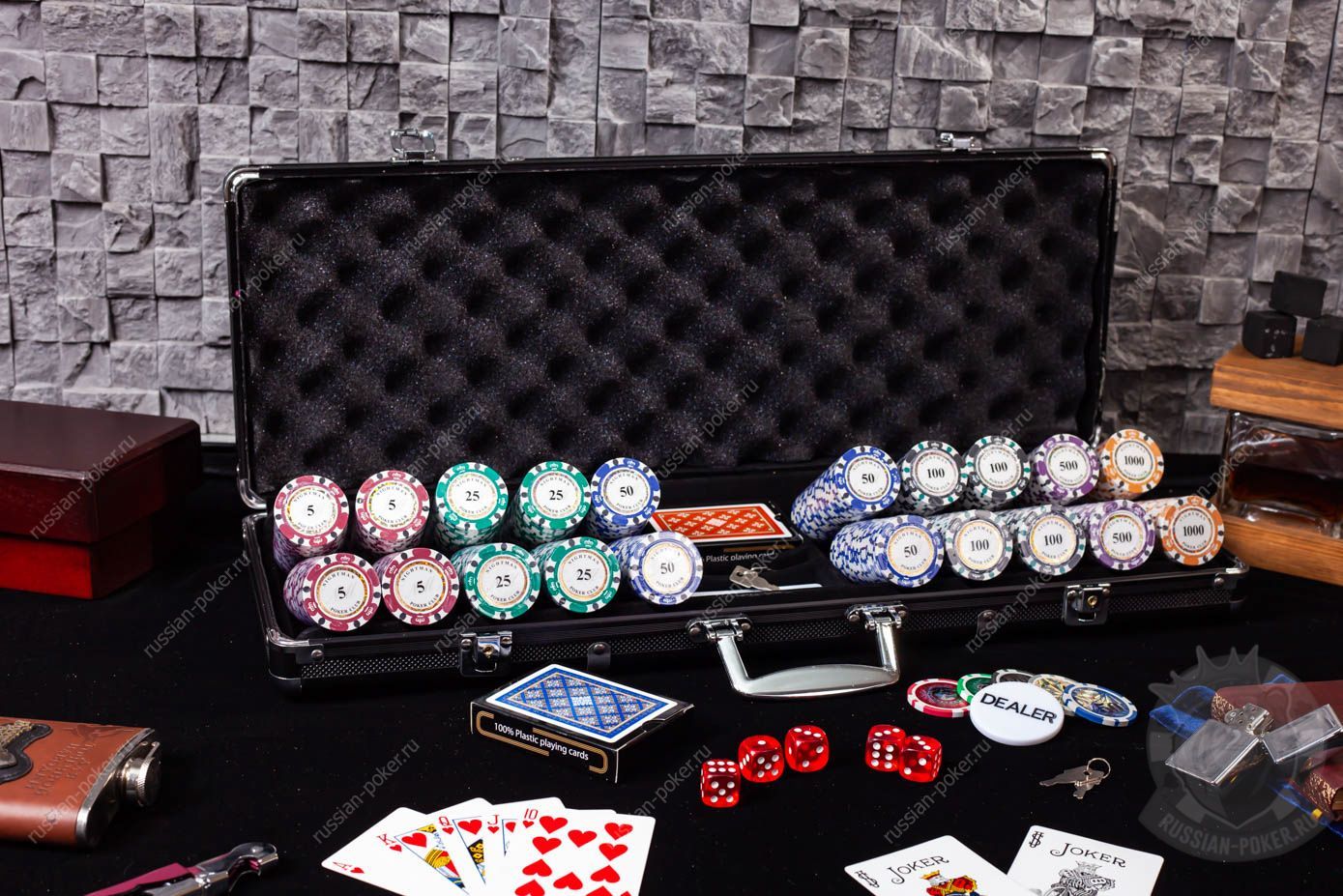 Набор покера Royal Flush на 500 фишек с номиналом, в стальном кейсе