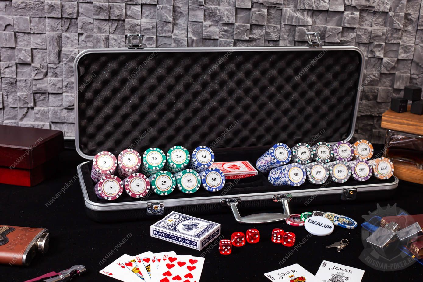 Набор покера Casino Royale на 500 фишек с номиналом, в кейсе с кожаными вставками