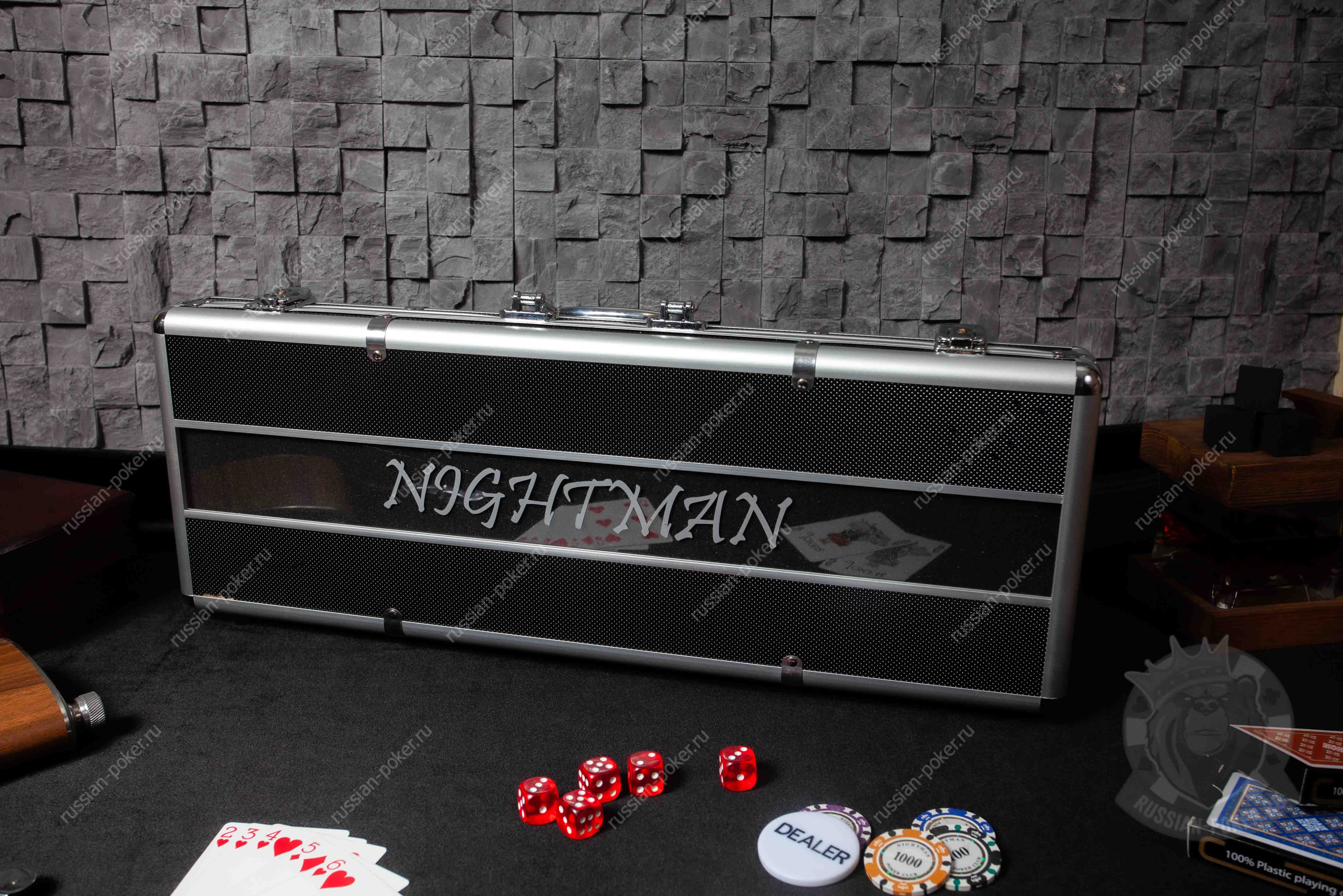 Набор покера Nightman на 500 фишек с номиналом, в черном деревянном кейсе с пластиковыми картами