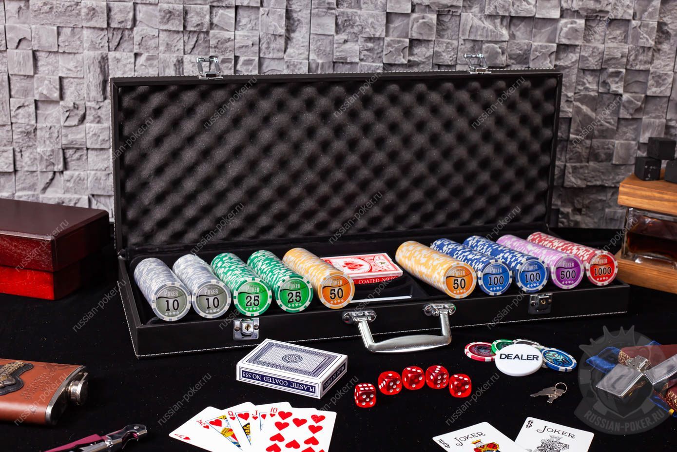 Набор покера Casino Royale на 500 фишек с номиналом, в кейсе с кожаными вставками