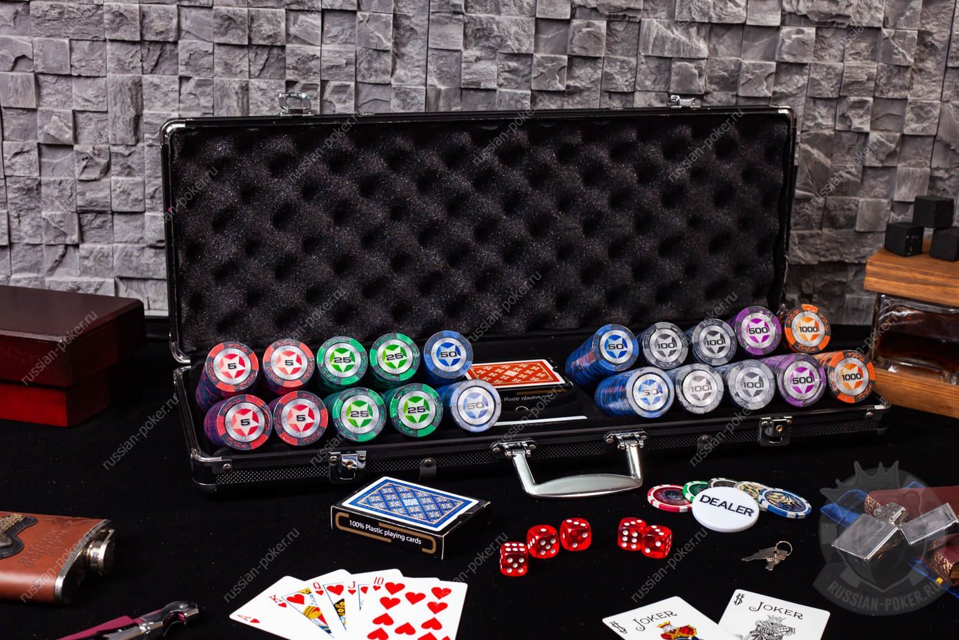 Набор покера Stars ULTRA на 500 фишек с номиналом, в фирменном кожаном кейсе с пластиковыми картами