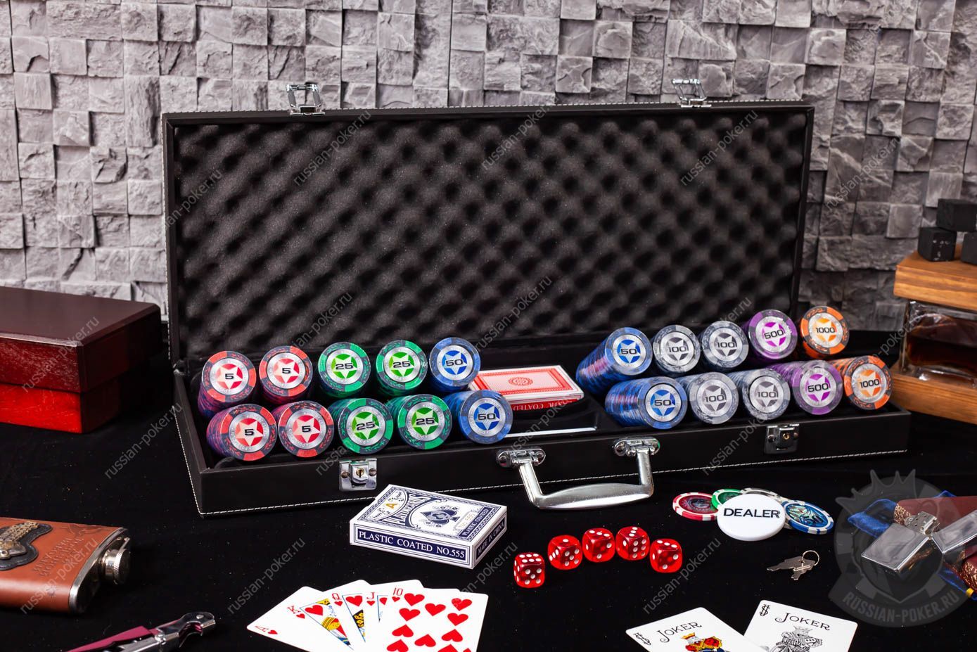 Набор покера Stars ULTRA на 500 фишек с номиналом, в кожаном кейсе