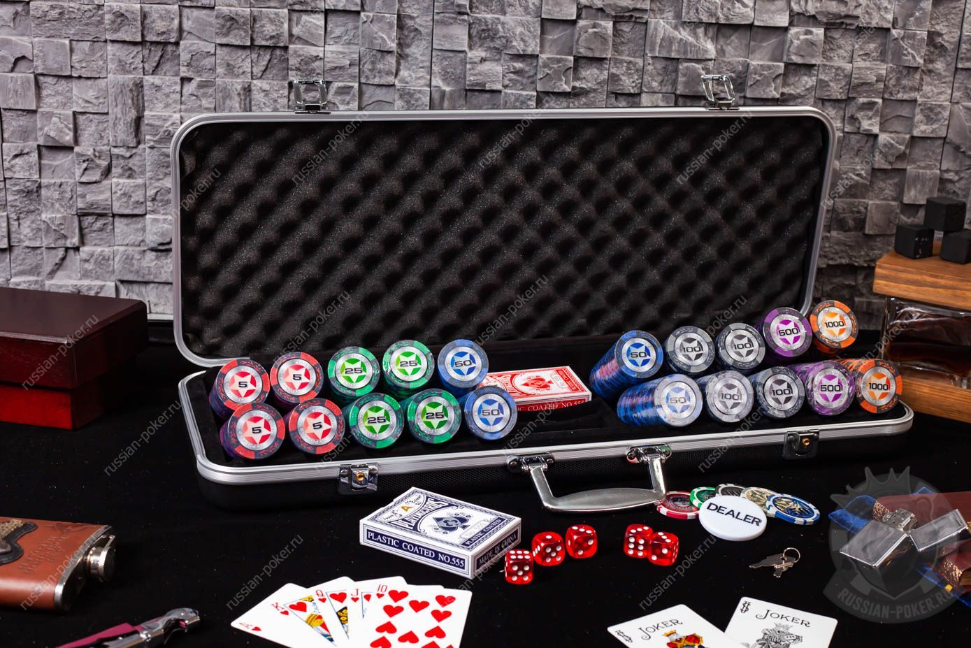 Набор покера Dice на 500 фишек в стальном кейсе с пластиковыми картами