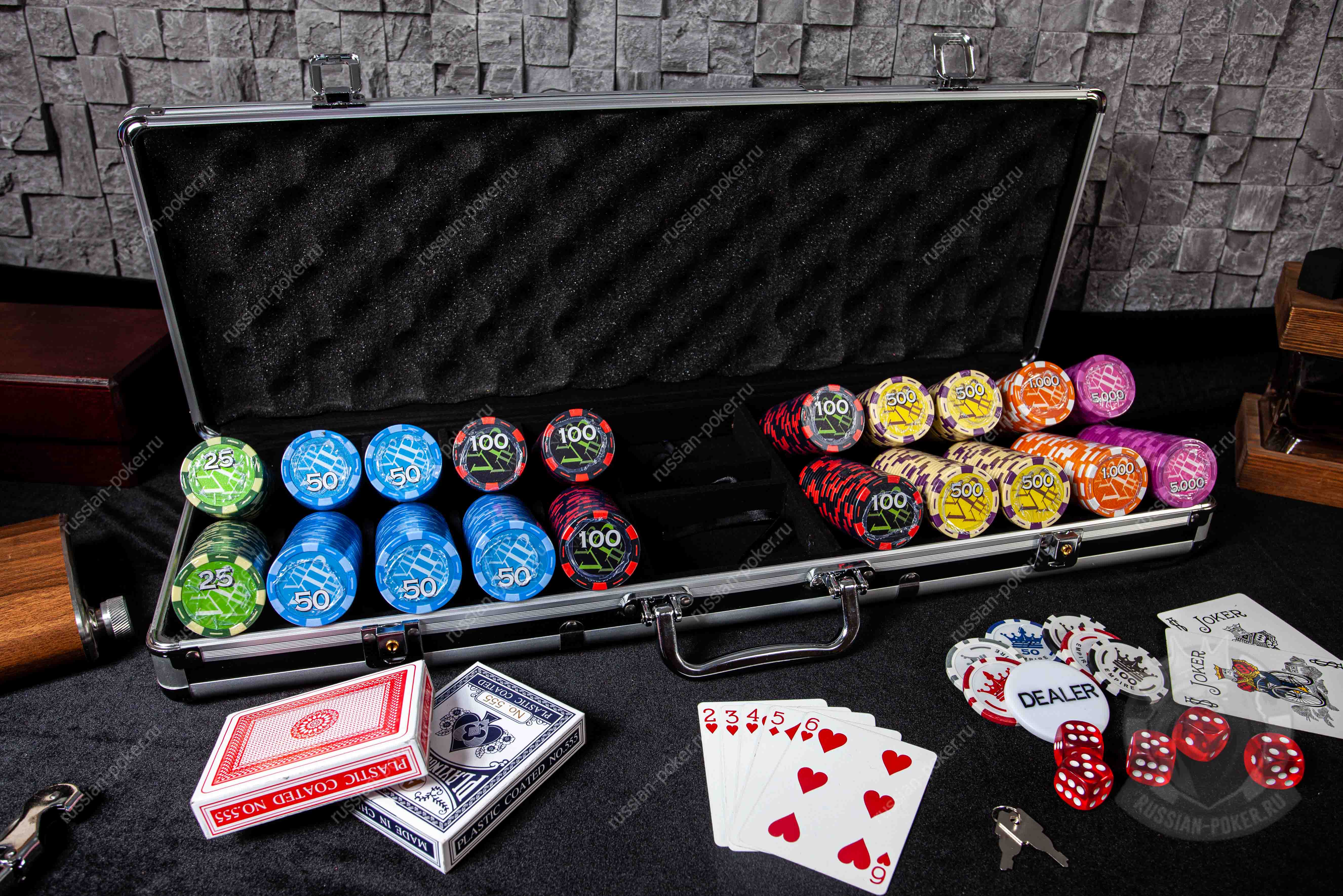 Набор покера VIP на 500 фишек с номиналом, в фирменном кожаном кейсе